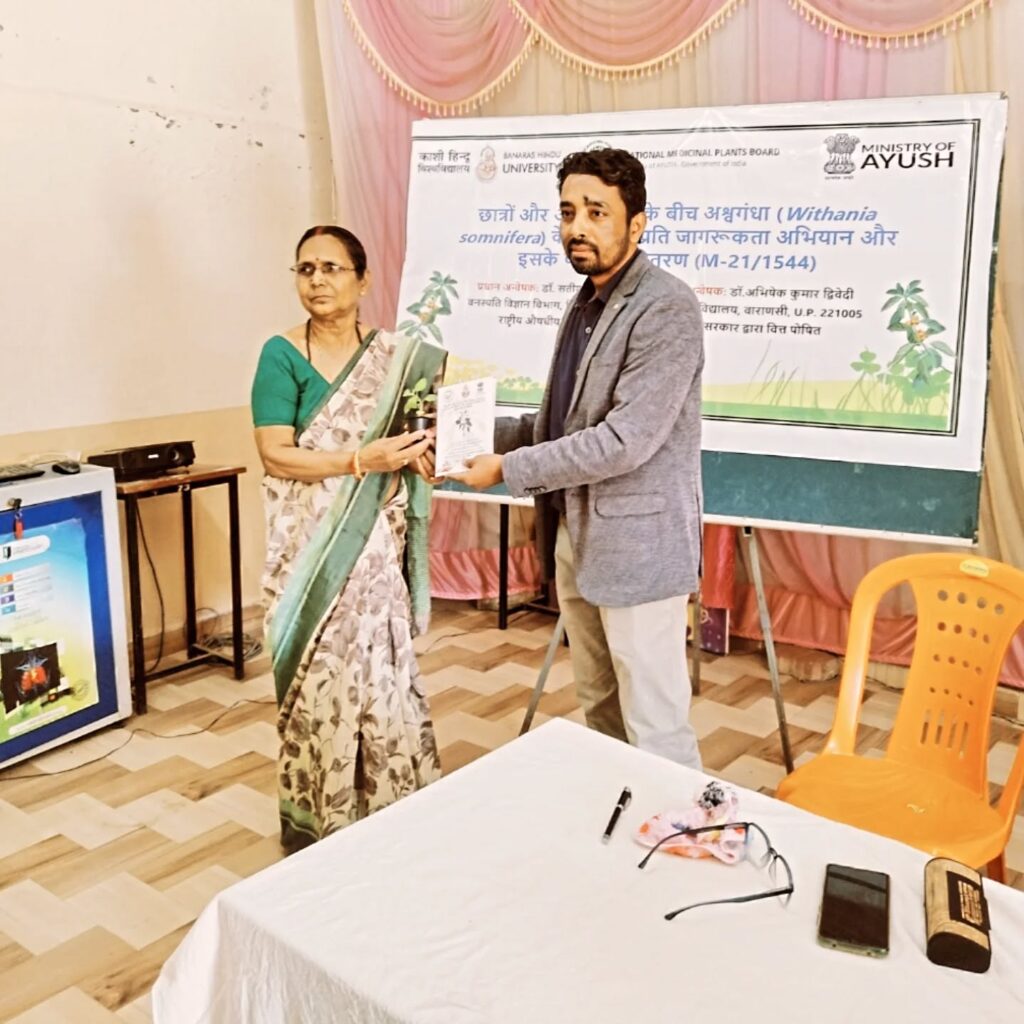To educate students and the general public about the benefits of Ashwagandha (Withania somnifera), an initiative was undertaken to spread awareness and distribute its plants, promoting health and well-being.