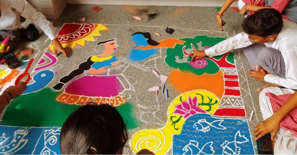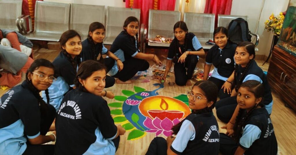 S.B.L.K. Memorial Oxford English School hosted a colorful Rangoli competition, where students showcased their creativity and artistic skills. The event celebrated tradition, culture, and innovation through beautiful and intricate designs.